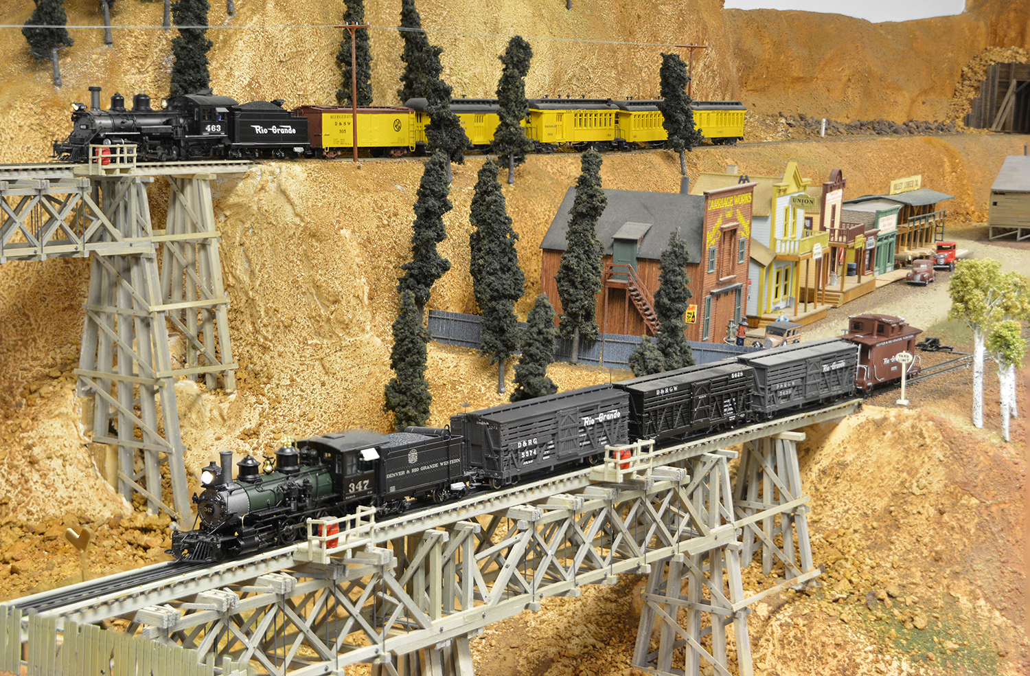 The Narrow Gauge Division of the D&SW proceeds from Gunnison to Lake City and then winds through the San Juan mountains via Ouray, Red Mountain and Silverton. A new extension provides service through Placerville and Ophir with the completion of the new high bridge between those two towns. The San Juan Southern (a wholly owned subsidiary of the D&SW) provides a second route from Ouray to Silverton via Animas Forks and the rich mines of the area. The mining, lumber, coal and annual stock movements providing enough shipments to keep the narrow gauge alive.
